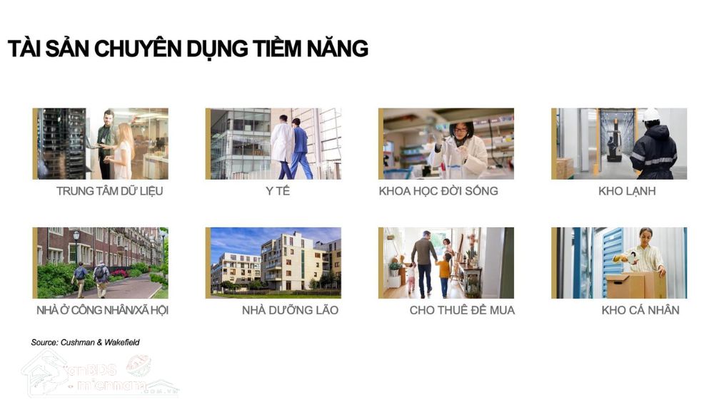 Trong dữ liệu đưa ra, Cushman & Wakefield chỉ ra các mảng của thị trường “ngách” có tiềm năng trong tương lai, hiện chưa được khai thác nhiều. Đó là trung tâm dữ liệu, y tế, khoa học đời sống, kho lạnh, nhà ở công nhân/xã hội, nhà dưỡng lão, cho thuê để mua, kho cá nhân.